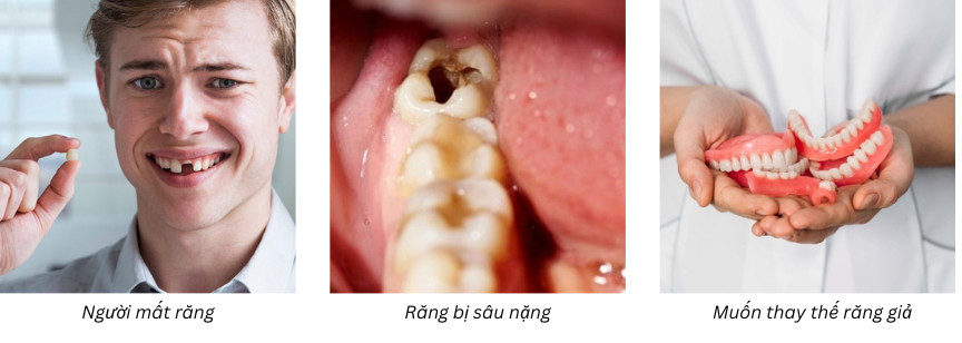 1. Người mất răng: Những người đã mất một hoặc nhiều răng do bị rụng, chấn thương hoặc sâu răng có thể là ứng viên cho cấy ghép implant.